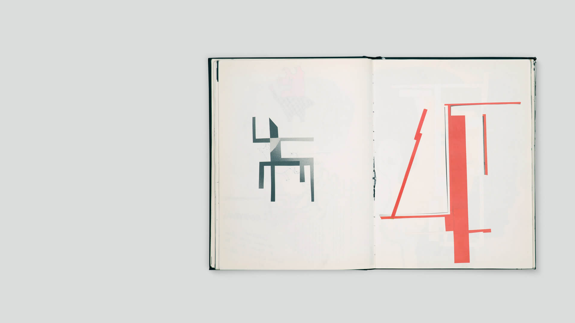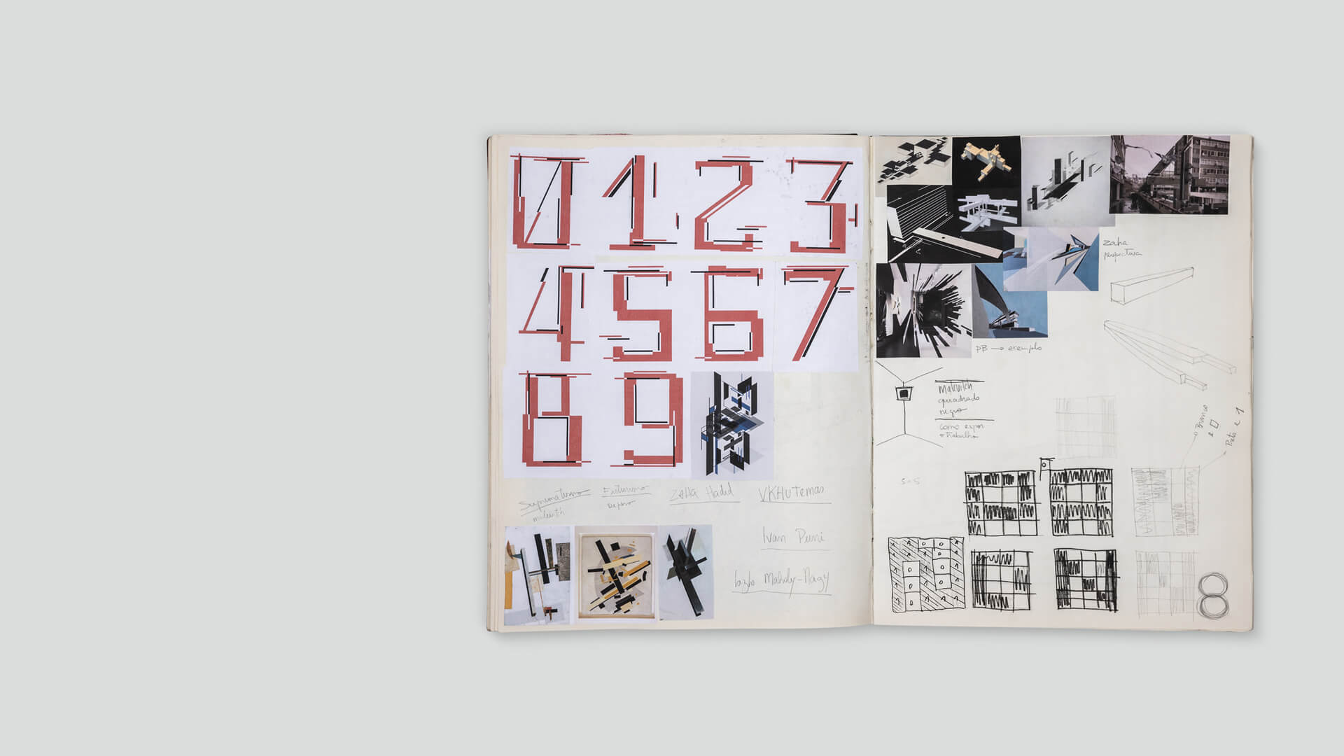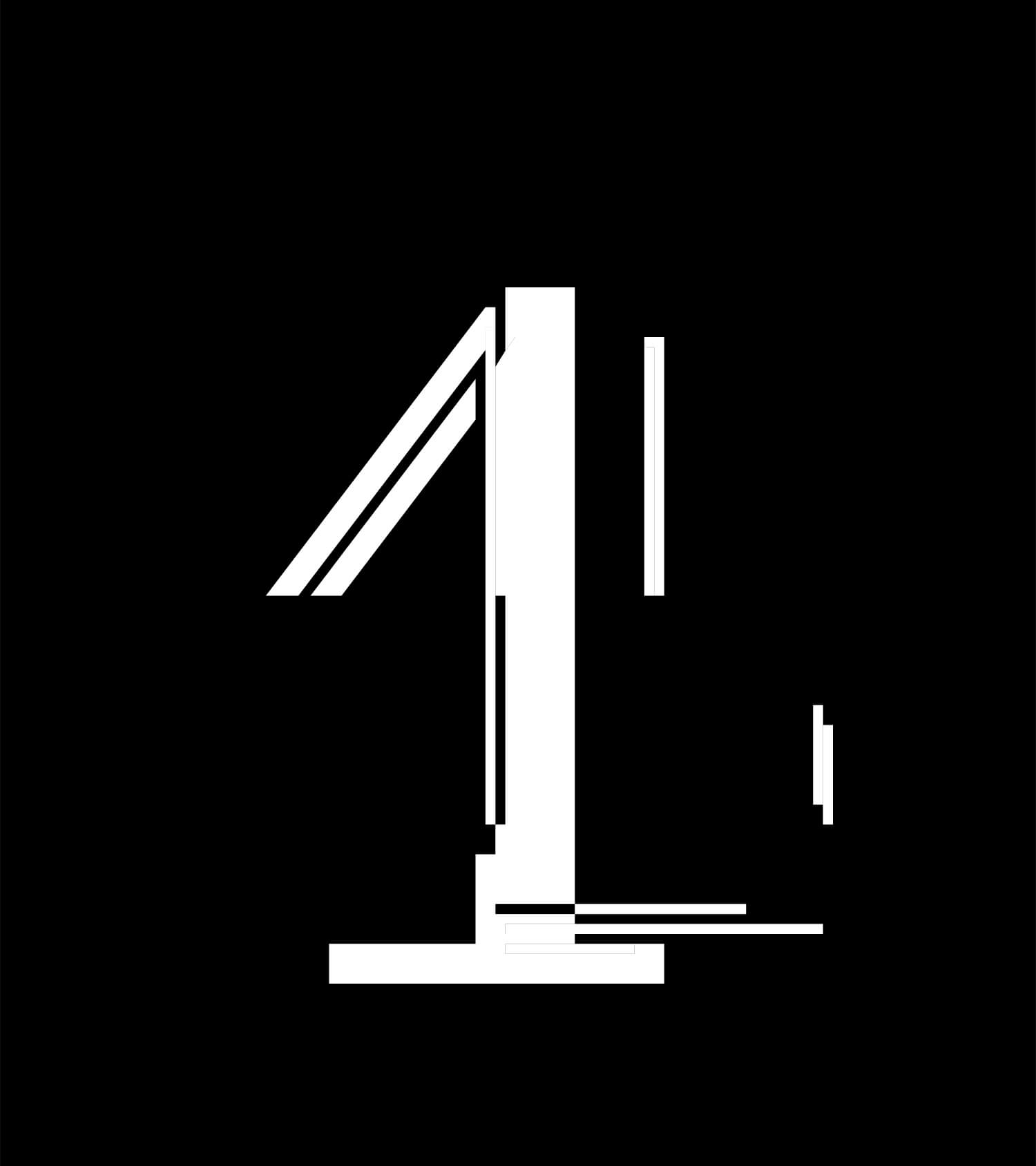 Alguns restos de papéis dispostos ao acaso foram a fagulha para a identificação do número quatro. A colagem produzida com esses restos de papéis foi aplicada em uma grade para que fosse construído o sistema numérico completo.